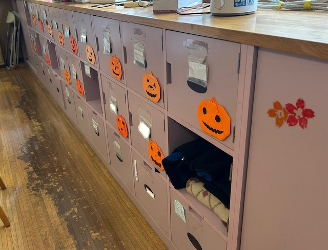 みなさまのロッカーには、一つ一つ表情が違うカボチャのお化けを飾り付けました。