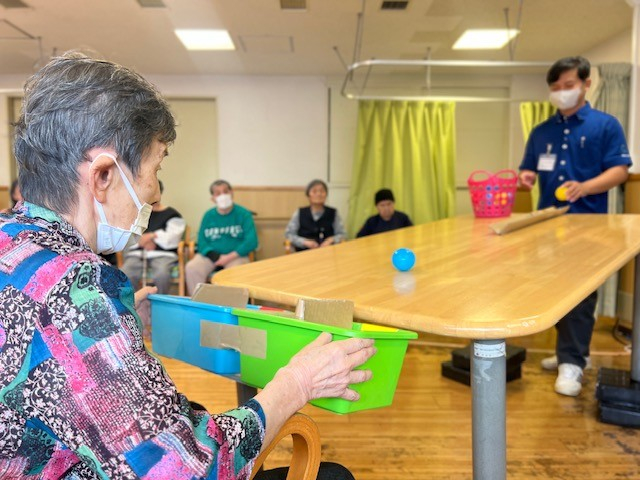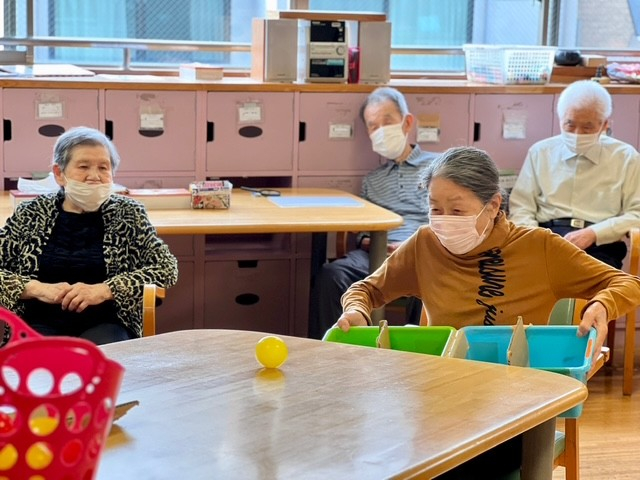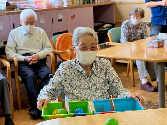 今日の笹幡デイサービスは、笑い声と拍手でいっぱいでした (^▽^)!職員手作りの“カラーボール転がしゲーム”で、利用者様が次々とチャレンジ!