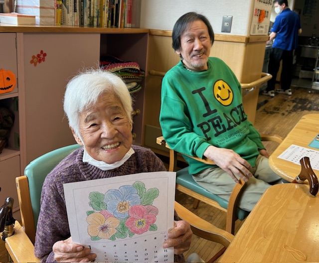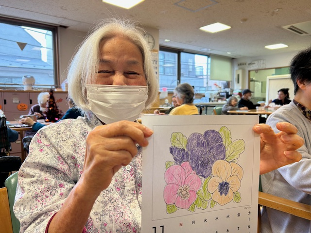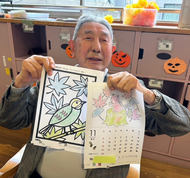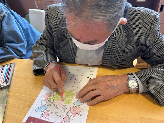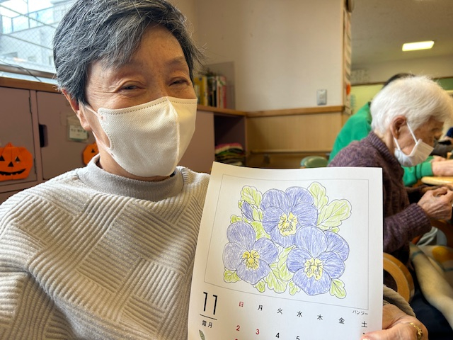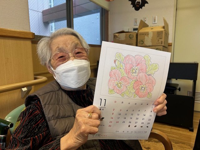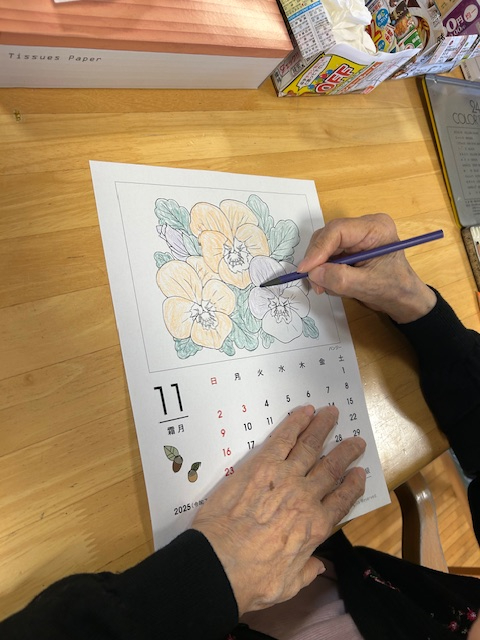 本日は、ご利用者さまに11月のカレンダー塗り絵を塗っていただくレクリエーションを行いました♪