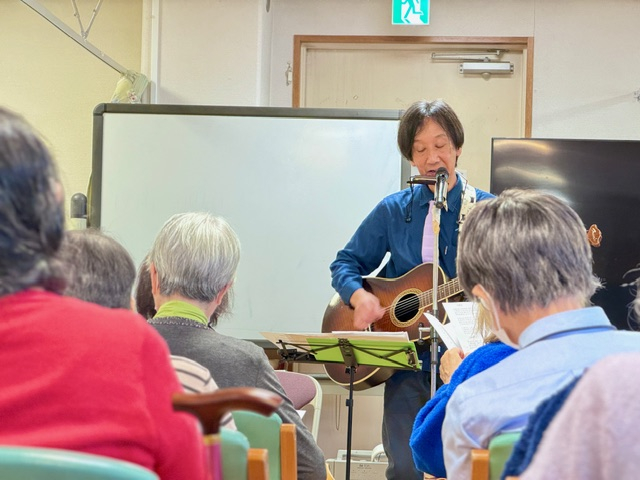 先日、甘利さんのギター演奏者の方をお迎えし、皆様と一緒に歌う 「ギター歌会」 を行いました。