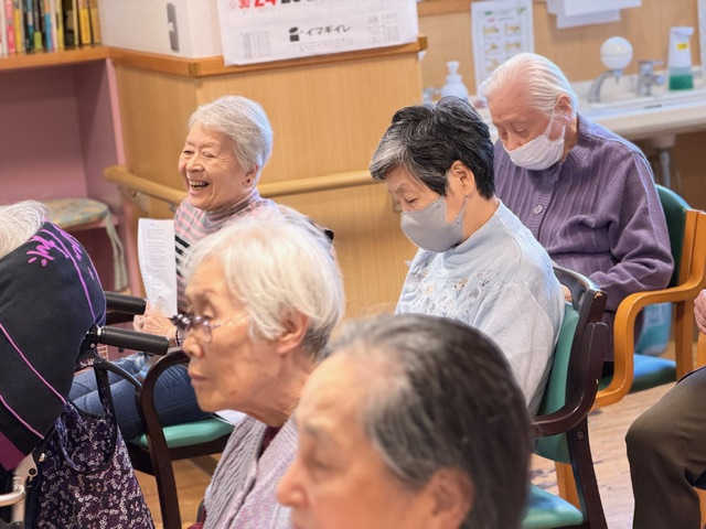 「昔よく歌ったなあ」と小さなつぶやきが聞こえ、それに合わせて笑顔がふわっと広がっていきました。
