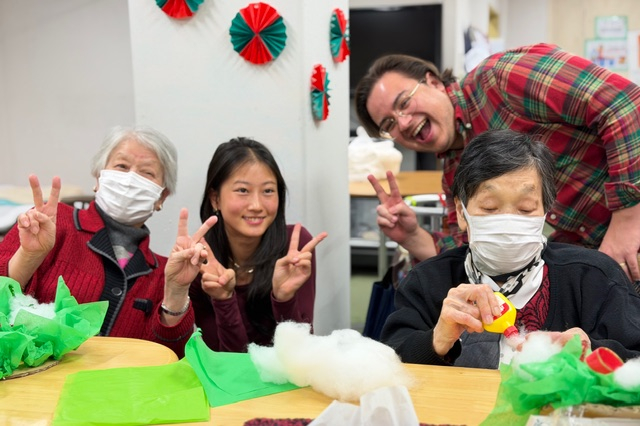 エバーグリーングループの生徒の皆さんと、ご利用者様が一緒になって取り組んだのはクリスマスリース作り 。