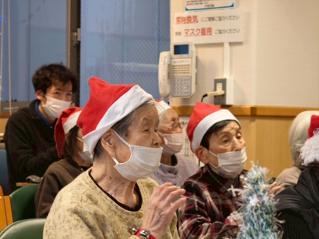 本日、12月24日(水)、クリスマスイブのデイサービスでは甘利さんによるギター演奏会を開催しました。