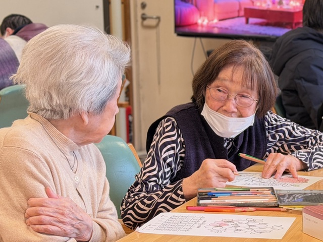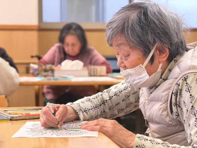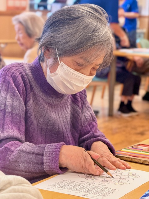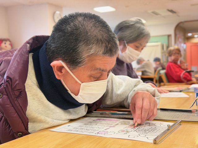 どの色を選ぶかを考えながら、自然と集中する時間となり、男性の利用者様も含め、皆さま最後まで意欲的に取り組まれていました。