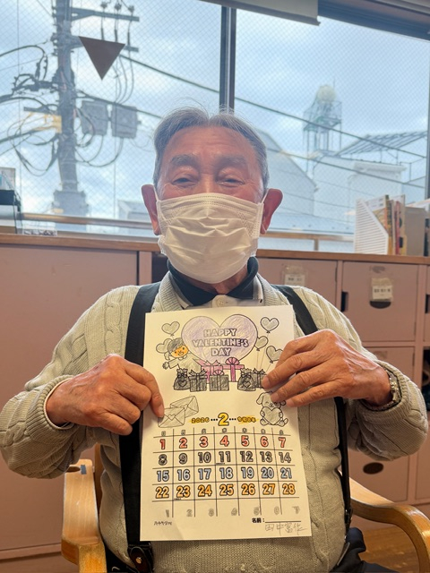 【笹幡デイ】「月が変わる」2月のカレンダーの色塗り活動~©