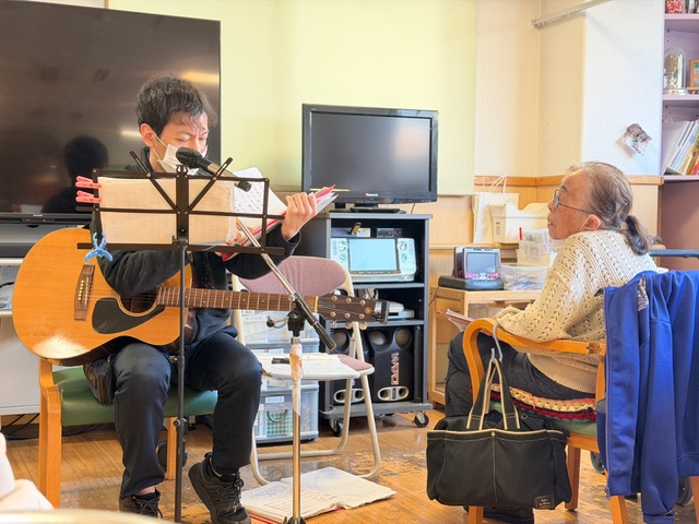 先日、ギターが得意な職員による「歌の時間」を行いました。