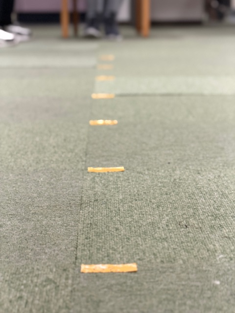 床に貼られたラインのどこに届くかで点数が決まります!