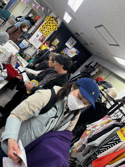 バザーでは、衣類や日用品が並び、掘り出し物を探す楽しさに、