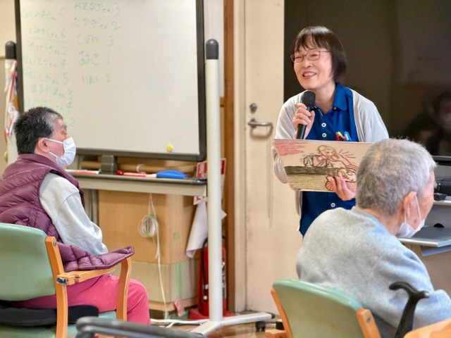 職員が一枚一枚絵をめくりながら、物語を語っていく紙芝居。