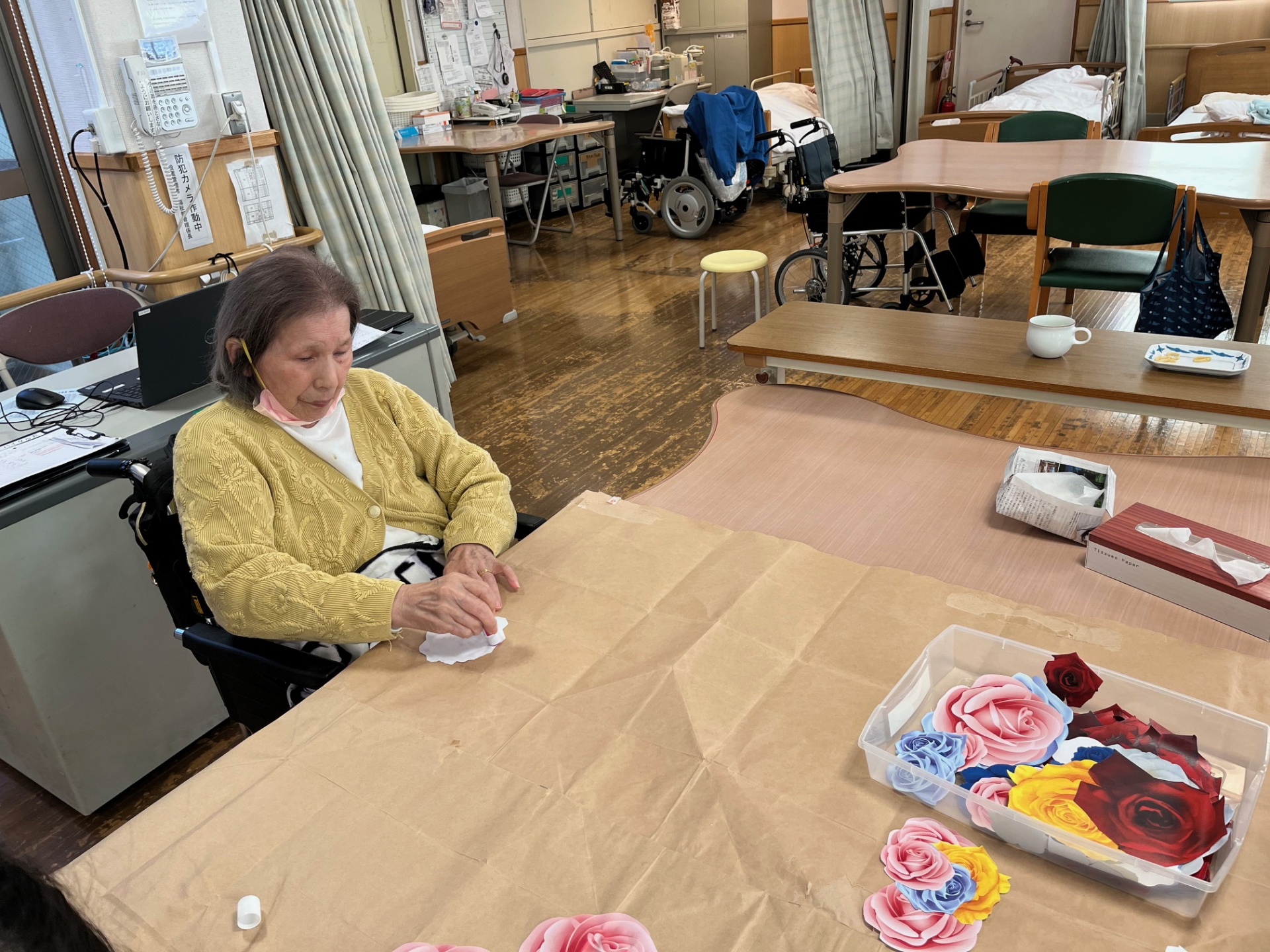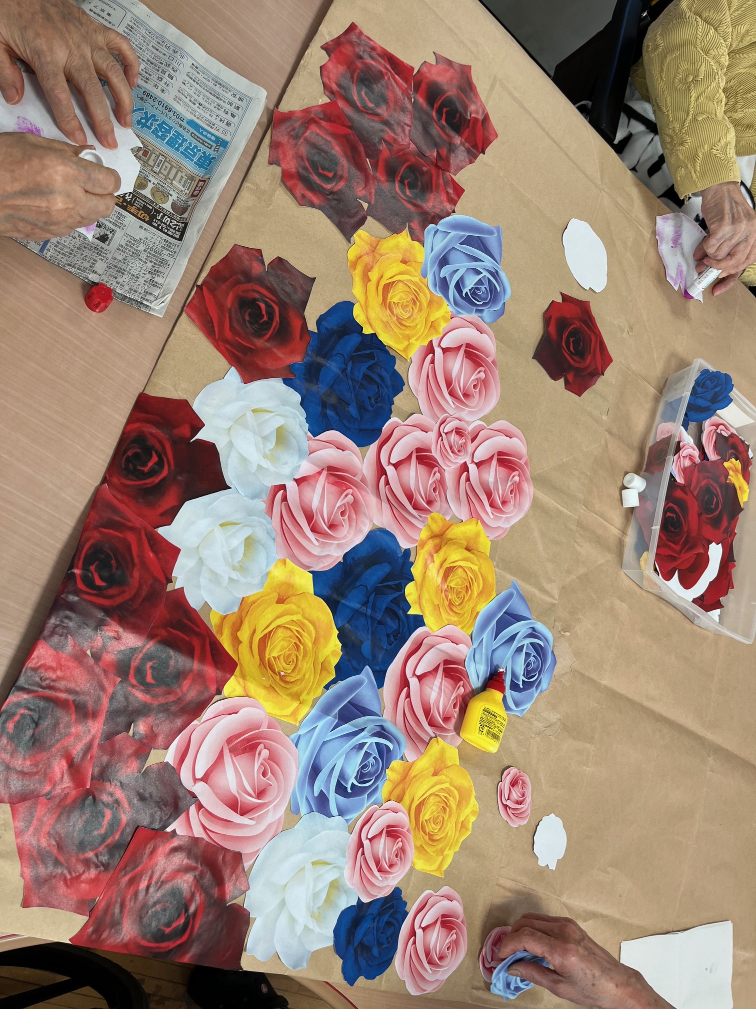今日は皆さんにフロアの装飾つくりをしていただきました