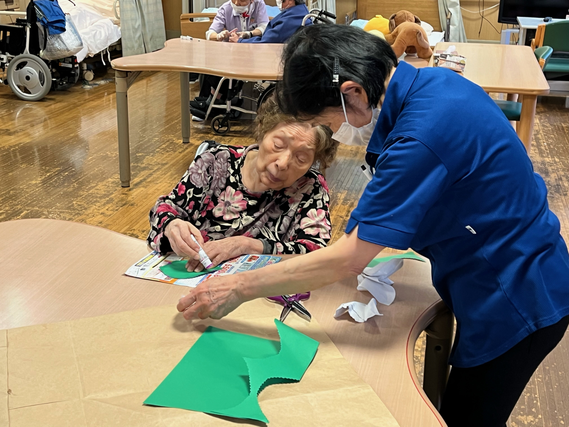 一つ一つを丁寧に張り付けながら職員とお話をされ過ごされました!