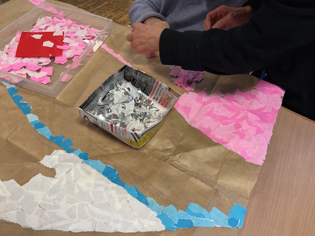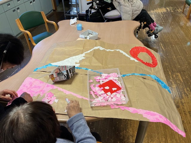 富士山と桜と大きな日の丸をちぎり絵で作成していきます