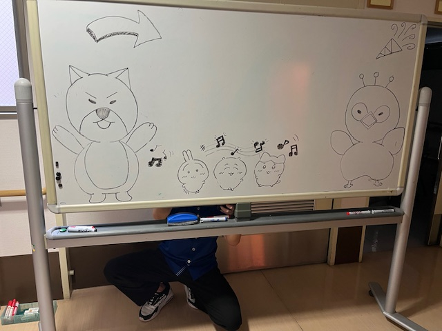 他の作業を済ませている間に表面が完成していて奉優会のオリジナルマスコットも書いてくれました