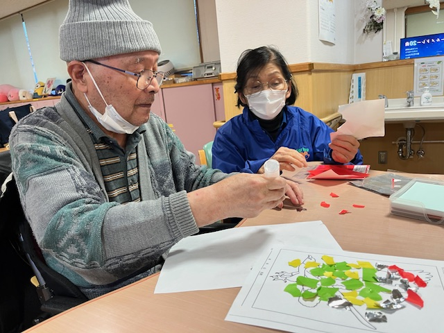 午後は季節の飾り作りで貼り絵でクリスマスツリーを作り、冬支度が進みました。