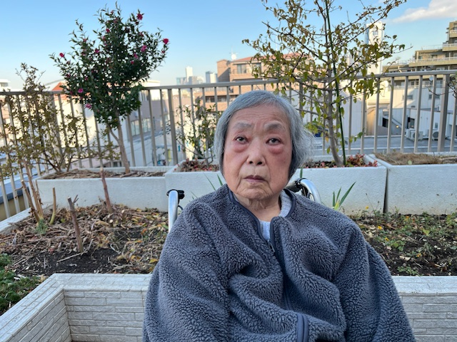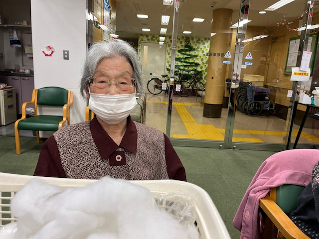 午前は外気浴を兼ねて玄関先で日向ぼっこ。冬の太陽が心地よく、皆さん自然と笑顔に。