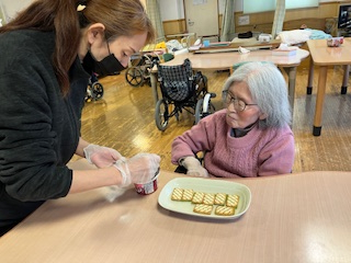 出来上がったおやつは午後のひとときにゆっくりと味わっていただき美味しいねと好評でした