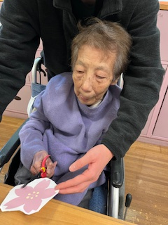 桜のイラストを切り取ったり折り紙を型取ったり、一枚一枚桜の花を作りながら綺麗だねと自然と笑顔がこぼれていました
