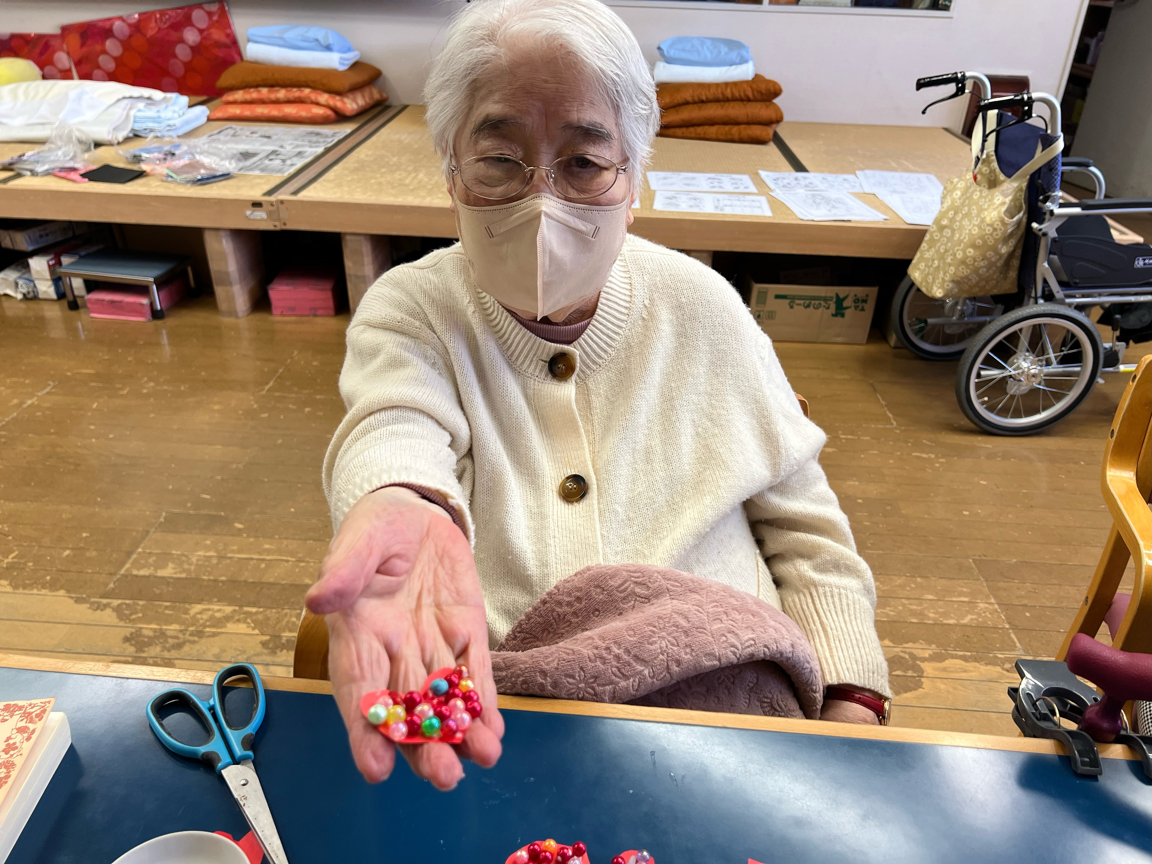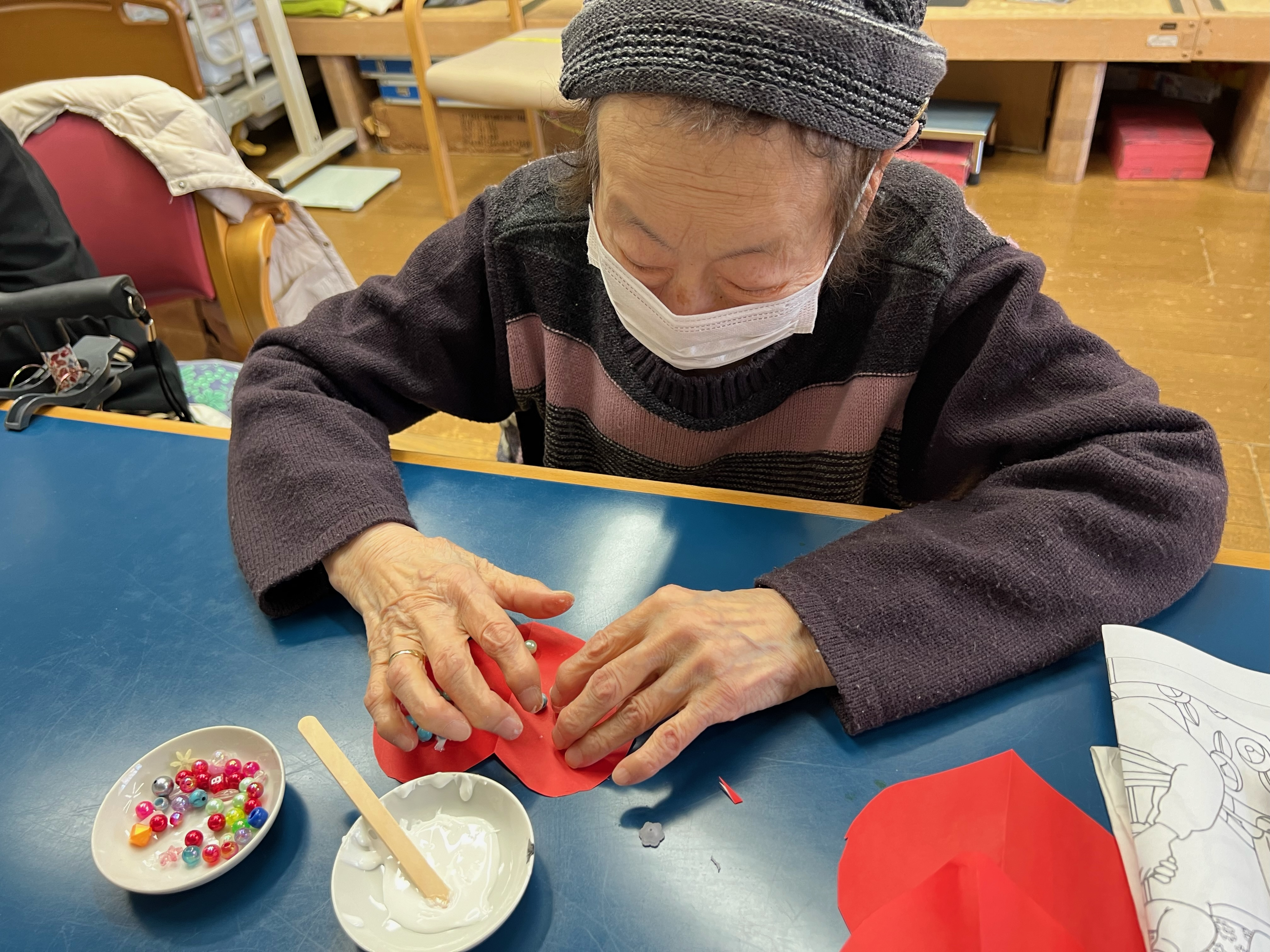 ふれあいクラブでは、バレンタインにちなんでハートをたくさん作りました