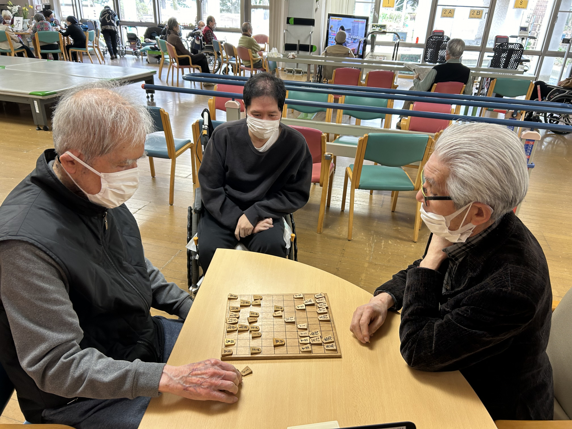 2024.03.02 デイサービス 今日のタイトル戦!! Tweet シェアする 昼食後の1局。 どちらの方が優勢でしょうか。 今はまだ序盤戦ですね。 勝負の行方やいかに。 それでは次回もお楽しみ。 前の記事 2024.03.07 デイサービス お笑い音楽イベントのお知らせ 次の記事 2024.03.02 デイサービス 春の香り!! 一覧へ戻る