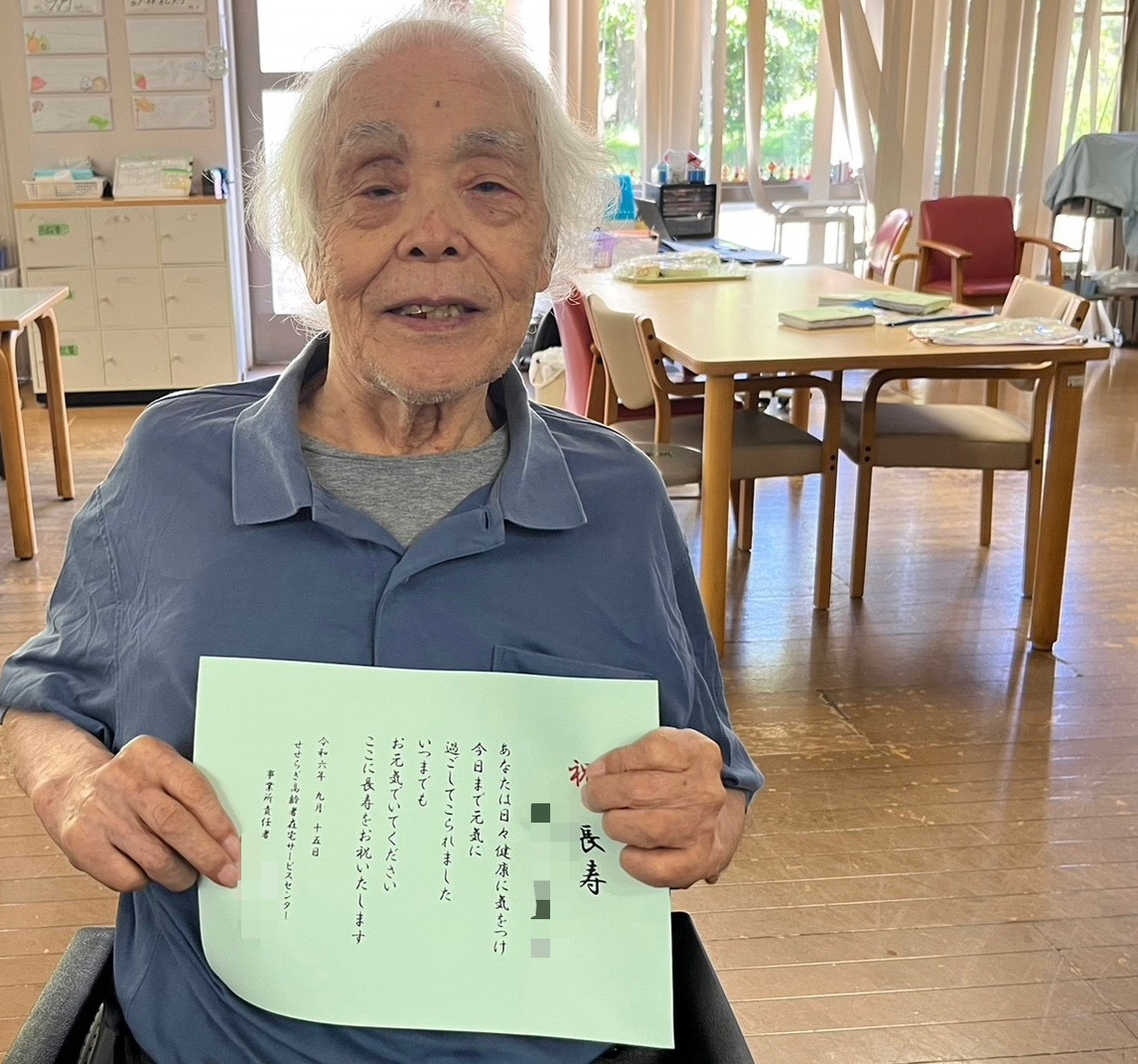 2024.09.15 デイサービス 敬老祭 Tweet シェアする こんにちは、せせらぎデイサービスの郷です。 本日は敬老祭☆彡 みなさん賞状をもらって嬉しそうな様子! これからも元気に頑張っていきましょう♪ 前の記事 2024.09.15 デイサービス ひまわりづくり 次の記事 2024.09.13 デイサービス カラオケ祭り 一覧へ戻る