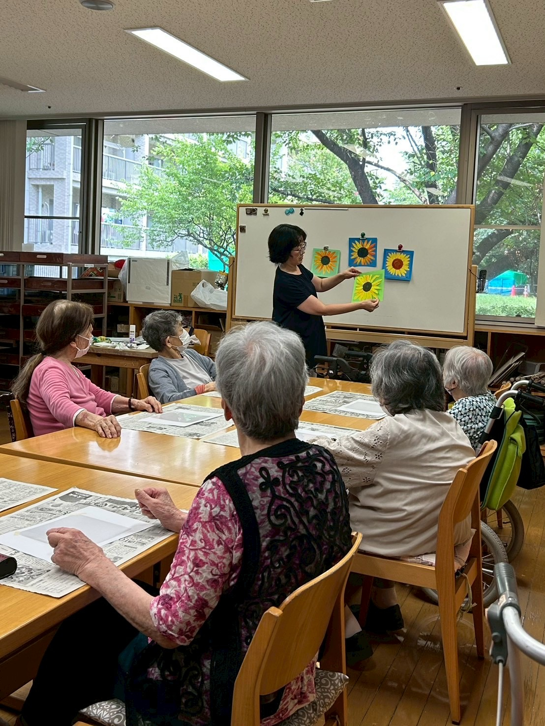 本日は臨床美術の先生にお越しいただき、夏の花ヒマワリを描きました!