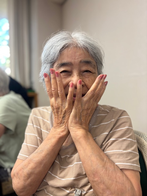 鮮やかなピンクや赤のネイルがとてもお似合いですね!素敵な笑顔です😊