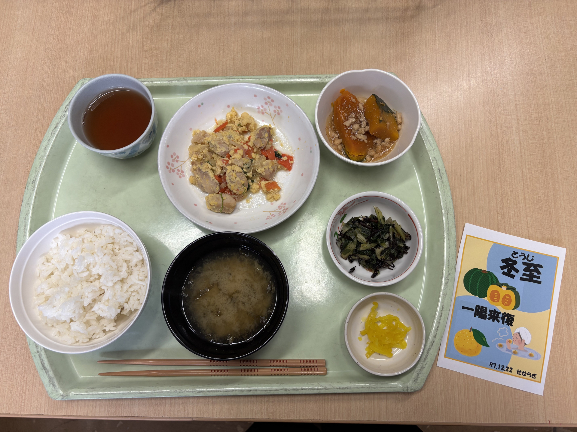 今日は冬至ということで、昼食のメニューも冬至にちなんだ食材が使われていました。