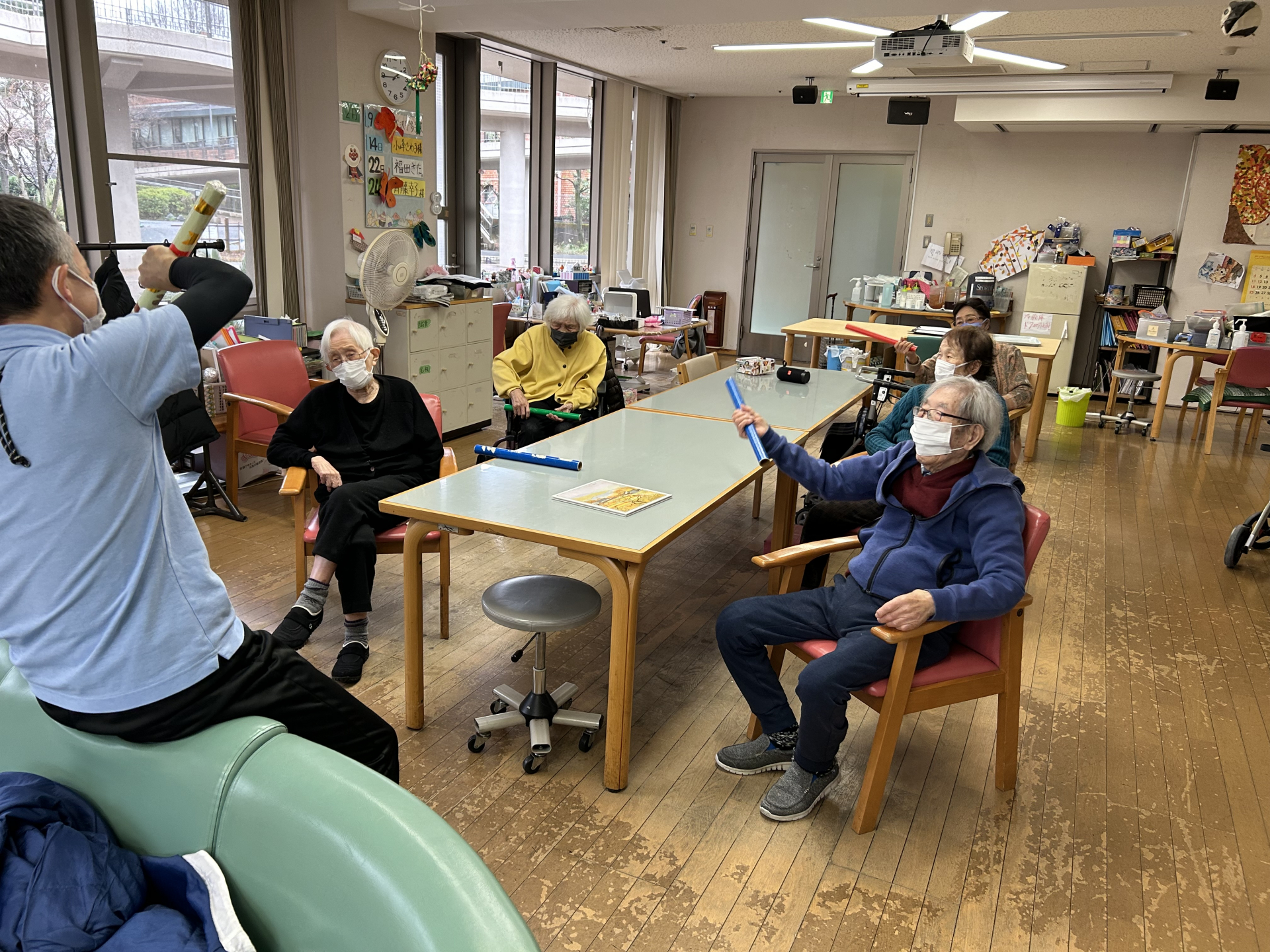 2024.02.23 認知症デイサービス 体操!! Tweet シェアする 音楽に合わせて棒を使い体操をしていきます。 皆さんリズムに乗りながらしっかりと動かれていますね。 それでは次回もお楽しみ。 前の記事 2024.02.23 認知症デイサービス 装飾作り 次の記事 2024.02.21 認知症デイサービス 植物園センターへ! 一覧へ戻る
