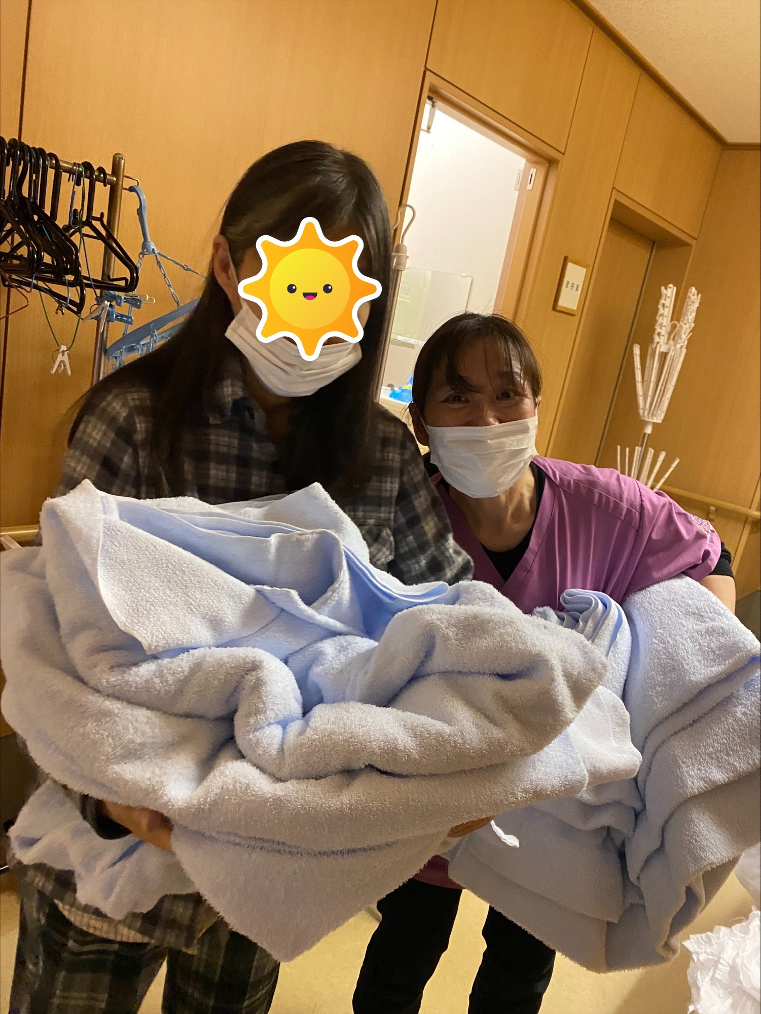 毎週、ベッドのシーツを交換しております。沢山ブランケットを持っている看護師を見た後すぐにお手伝いに来てくださいました。とても優しいですね~本当に助かっております。