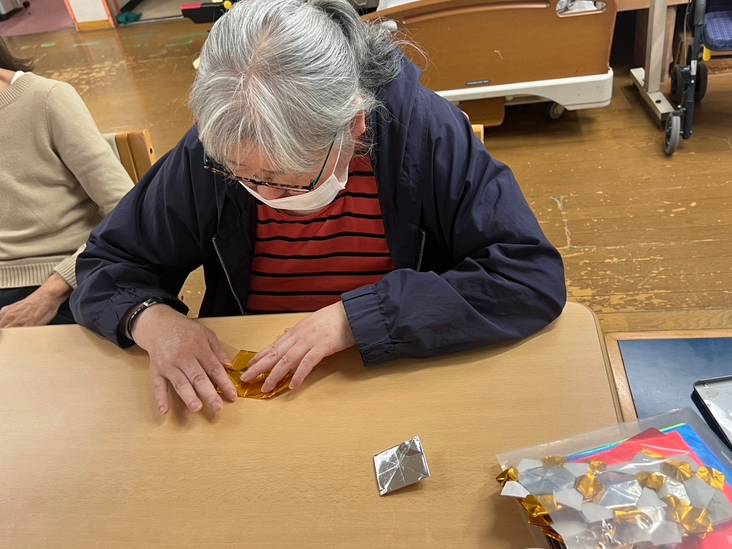 今日はがんばった方に授、与されるメダルを利用者様に作って頂きました。