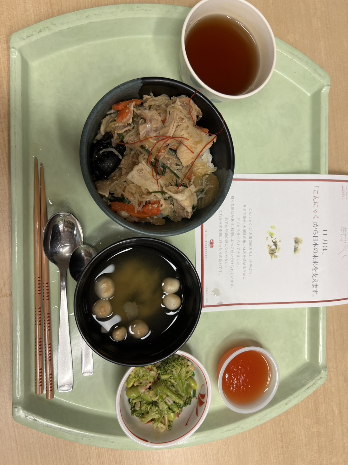 今月の食育メニューは「こんにゃく」です。食育とは食に関する知識を蓄え、生活に生かすこと。