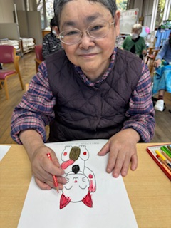 昼食後の、ゆったりと時間が流れる昼下がり、心地よく塗り絵に取り組まれる利用者様。
