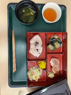 さて、一日恒例の赤飯の食事であります。利用者様に、新しい月に入ったことを、