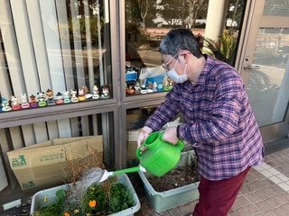 寒い日の昼下がり、ほのぼのクラブの利用者さまが水遣りをして下さいました。