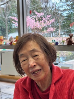 この利用者様の後にぼんやりと写っているのは、先日ご紹介した河津桜です。
