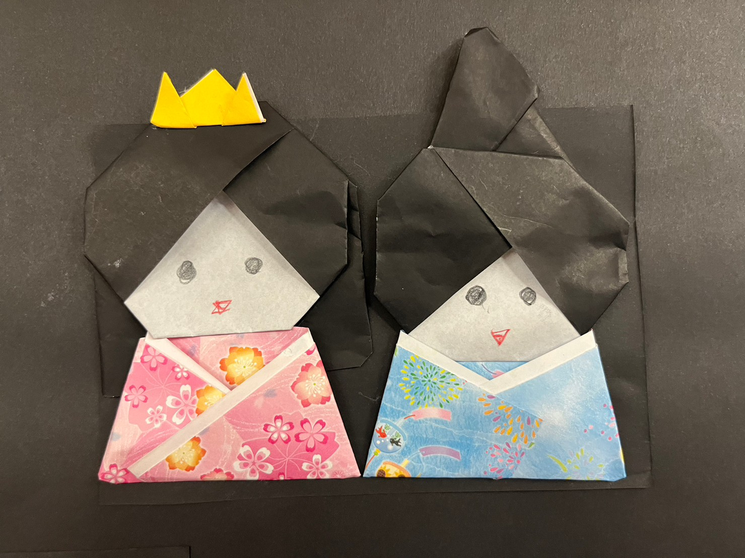 夫婦雛を作りました。なかなか難しい折り方だったのですが、職員の熱意が幸い