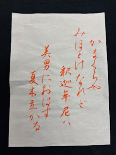 こんな短歌が題材だと練習のし甲斐がありますね。これからもずっと書道を楽しんで下さいね。 M.S.