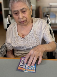 様々な言葉が飛び交います。でもこちらの利用者様は、淡々とビンゴの札を見つめておられました。 M.S.