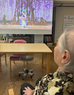 その素晴らしい振り付けと共来ました。と伝えられて来ました。ご覧になっている利用者様は、かつてご自分も踊りをやっておら