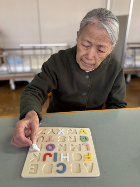 新しいパズルに取り組まれて方はもう一人おられました。こちらの利用者様は、あくまで静かに、ときおり考えを巡らせながら