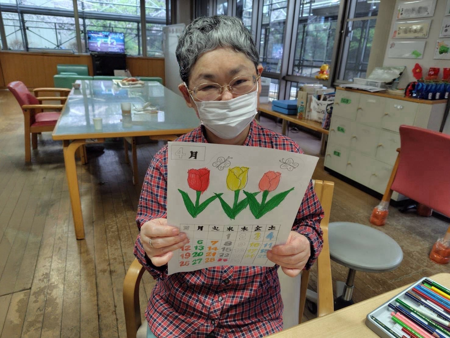 り絵はお好きなのですが、カレンダーは珍しいとのこと。これからも、どんどん色々なものに挑戦して行って欲しいです! M.S.