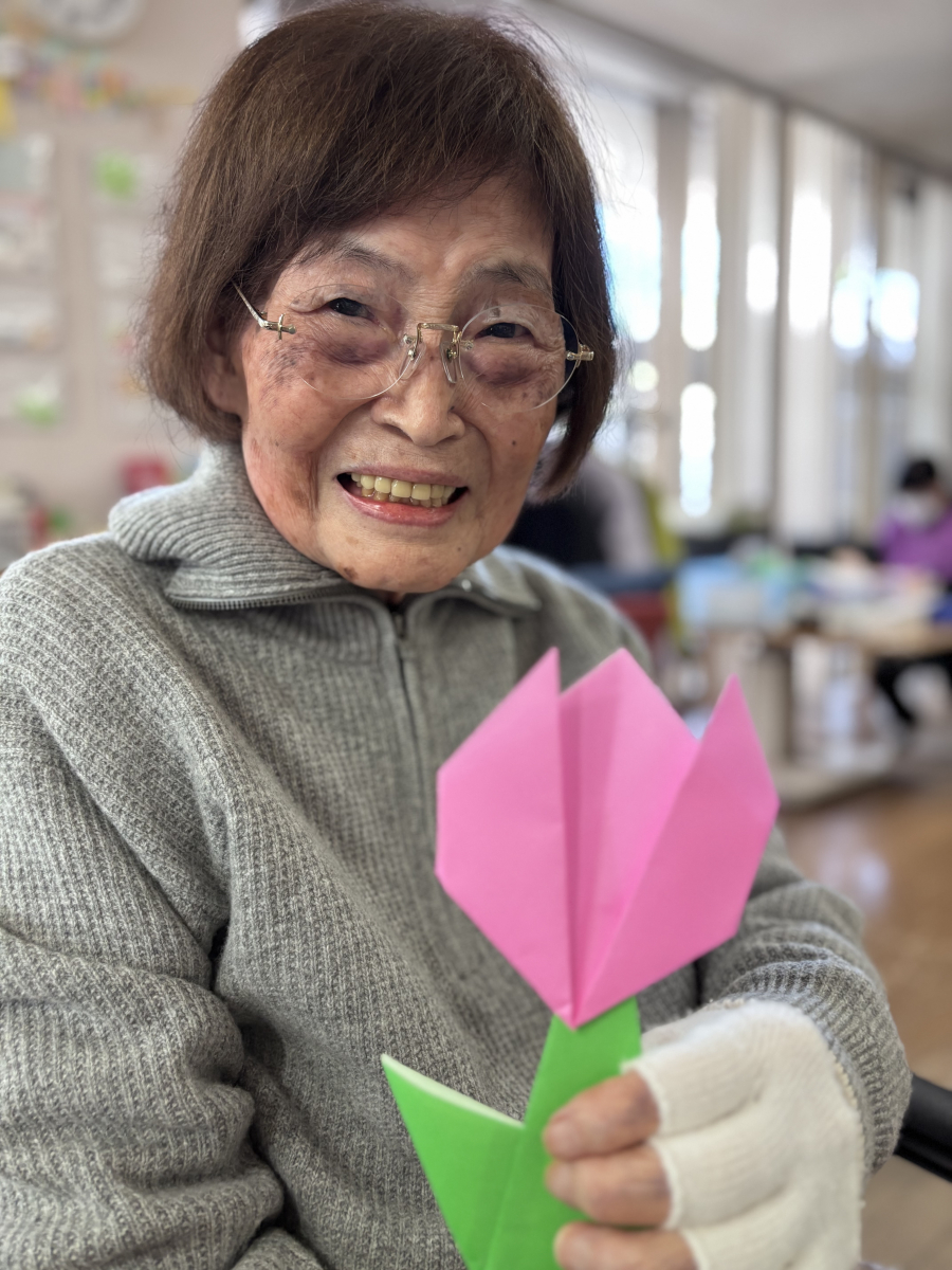 また、折り紙は指先の巧緻性の向上や集中力の維持につながり、機能訓練としても効果的な活動となっています。