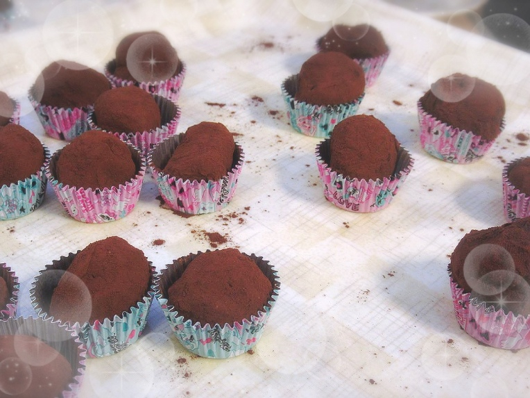 ザ・手作り!という感じで様々な形や大きさのチョコレートに。仕上げにココアパウダーをまぶせば完成!