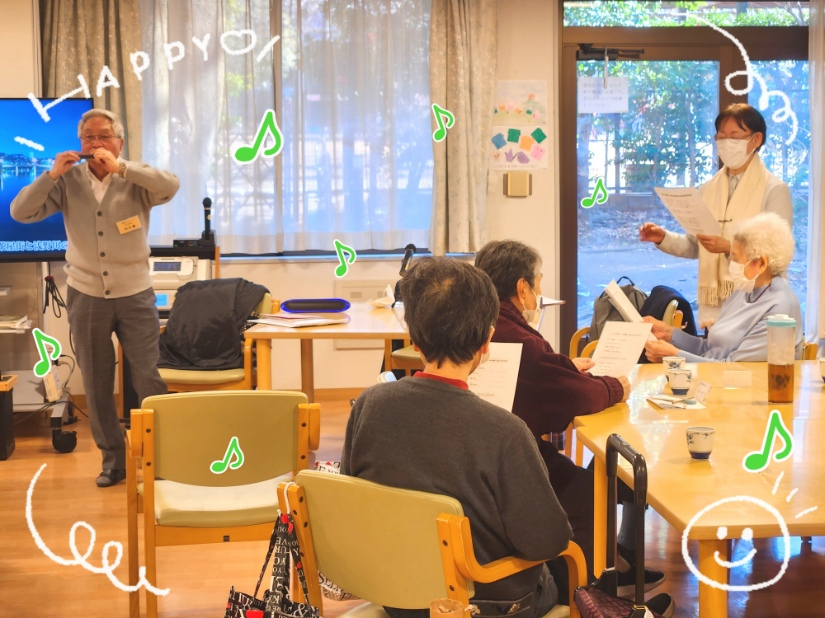 本日もハーモニカの演奏つきで皆さんで歌を楽しまれました。