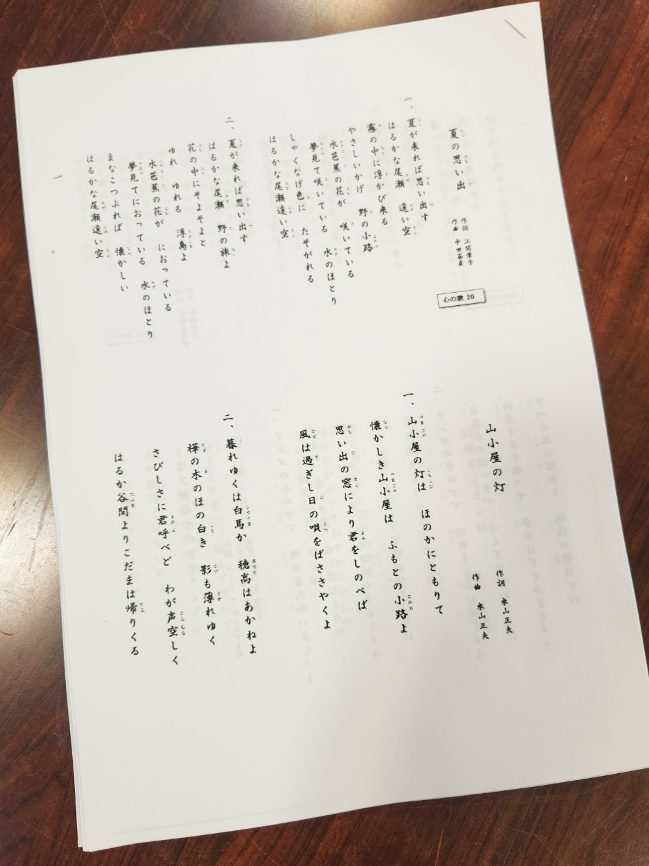 初めて参加されるご利用者様が大半でしたが、皆さん歌詞カードを手に歌を楽しまれました。
