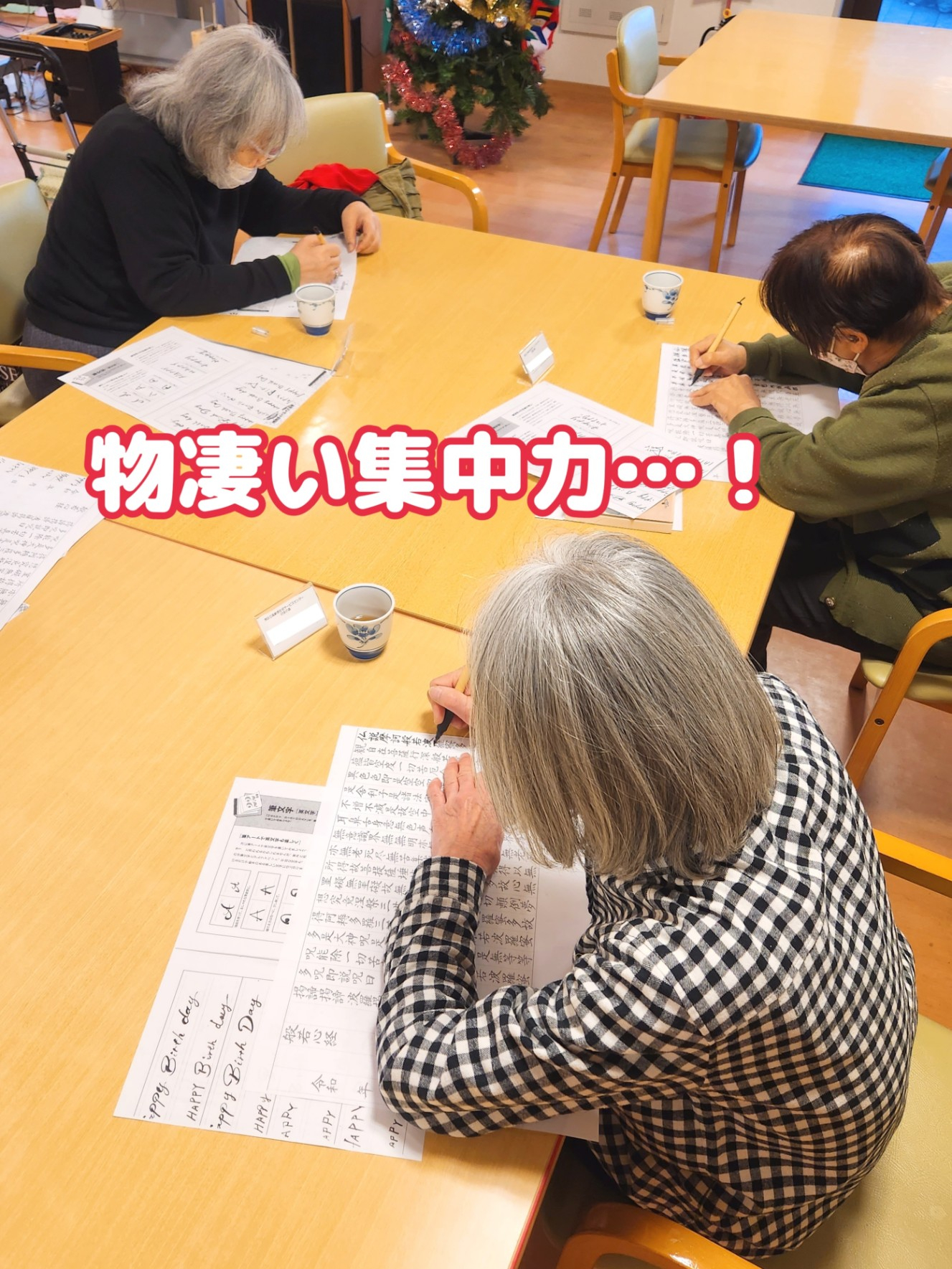 お手本を見ながら一筆一筆 丁寧に…。皆さんお話声が殆どないくらい物凄い集中力で取り組まれていました。