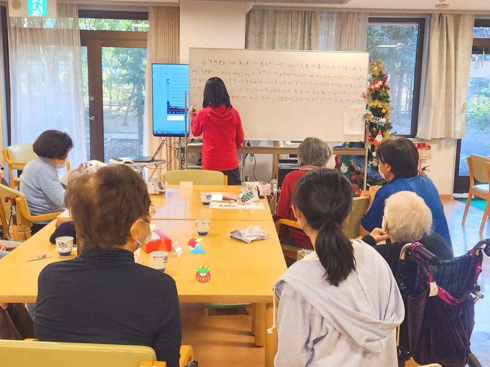 本日の午後のレクは学生さんにもお手伝い頂きながら「しりとりゲーム」で盛り上がりました!