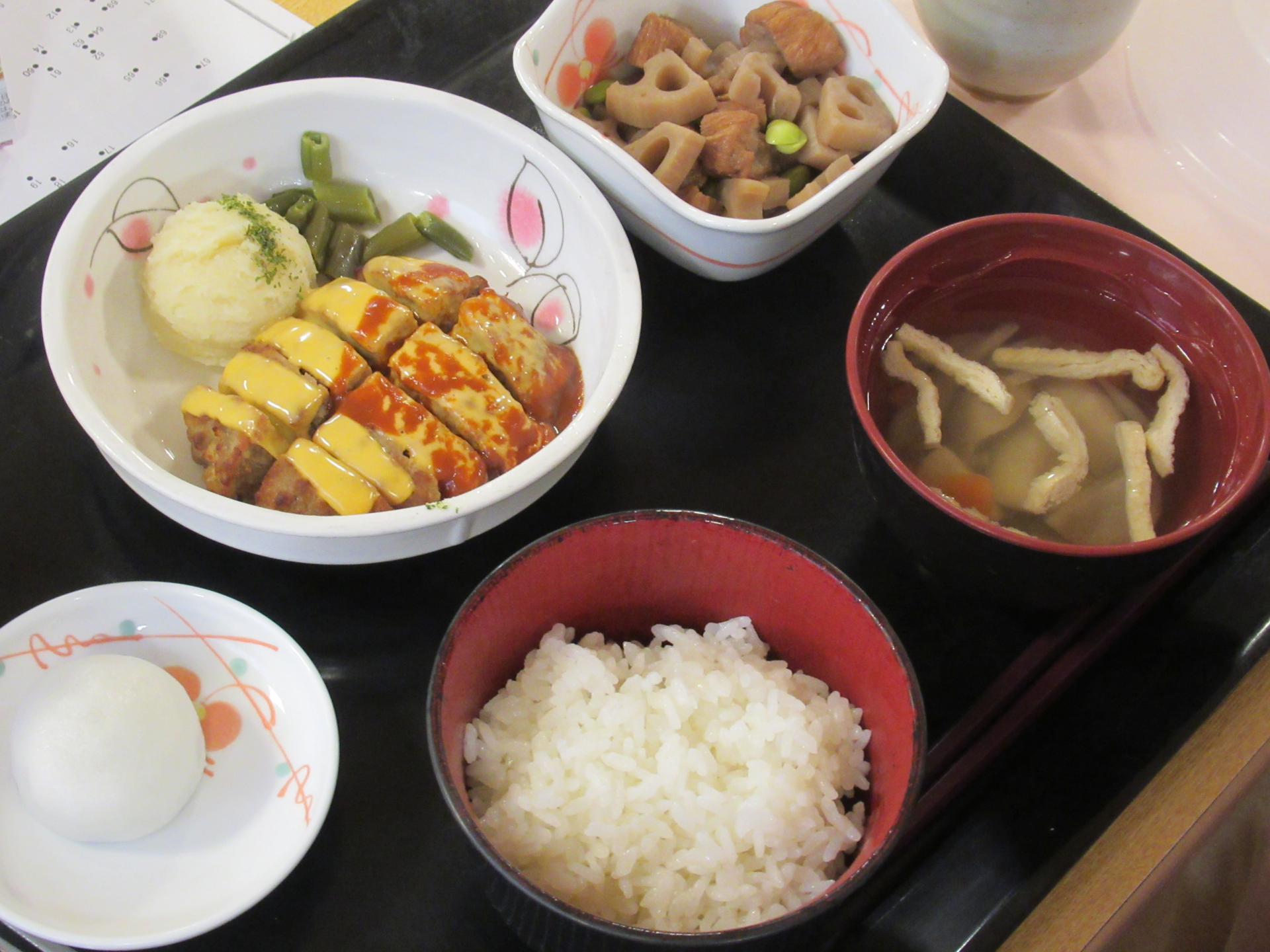 「チーズハンバーグ」には月に見立てて丸くチーズがかかっていたり、付け合わせのマッシュポテトも十五夜のように真ん丸に盛られていたり、目にも楽しい仕掛けがちりばめられていました。