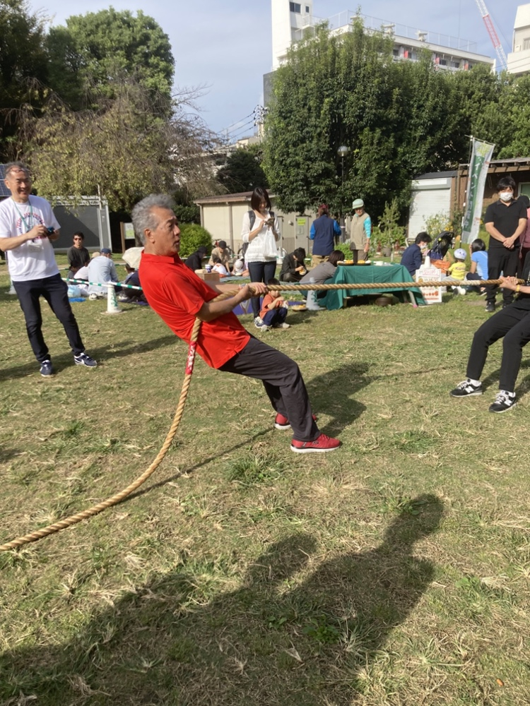 白金デイからは、高輪消防団の方が主催する「綱引き」にゲストとして一部のご利用者が参加することに!