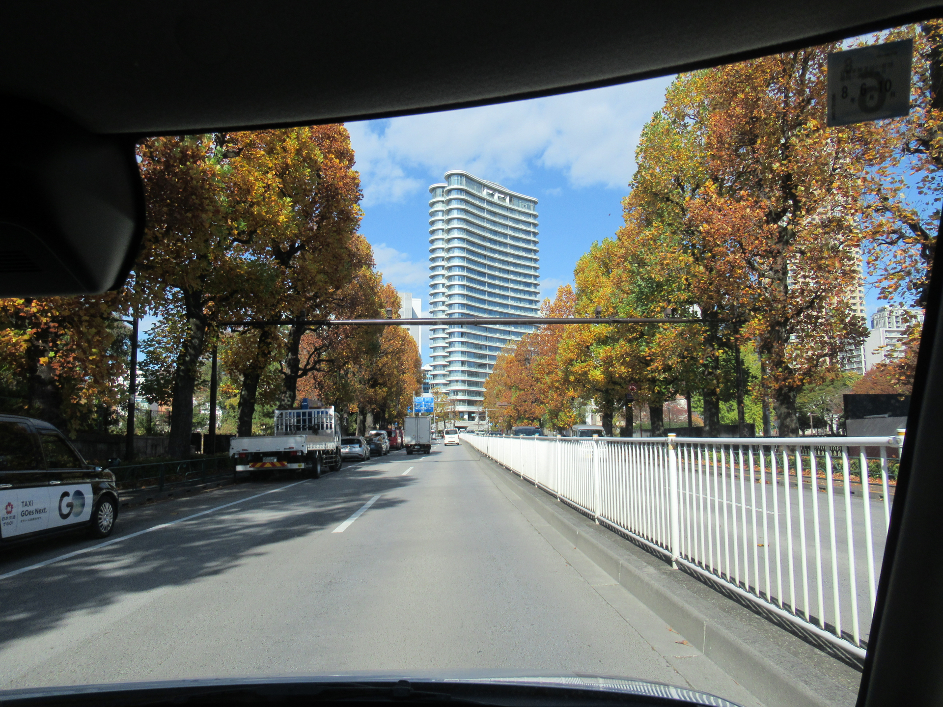 神宮外苑に向かう途中、青山霊園横の道では茶色く染まった街路樹に期待が膨らみます!